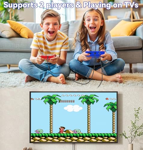 SUPPORT 2 PLAYERS & PLAY ON TV: Our gametendo game console comes with a game controller and a 118-in AV cable, which allows two players to share the game at the same time when connect the gamepad to the game console. The 3.0-inch LCD screen handheld games will also be connected to your TV via AV output cable. Allowing you and your game partner to enjoy the classic video games on a big screen.