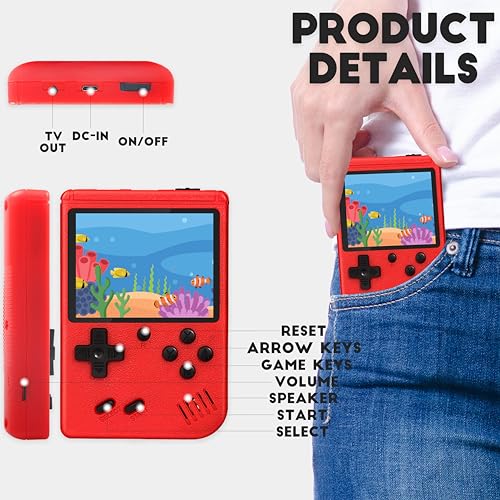 Retro Handheld Game Console,Portable Video Game Console with 500 Classic Games, 3.0 inches HD Screen, Support TV & Two Players Present for Kids & Adults Red