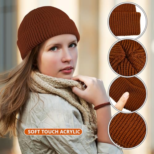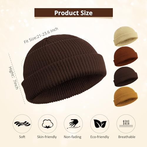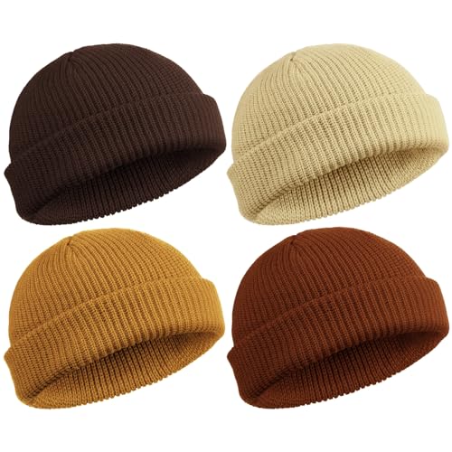 SATINIOR 4 Pieces Trawler Beanie Watch Hat Roll up Edge Skullcap Fisherman Beanie Unisex