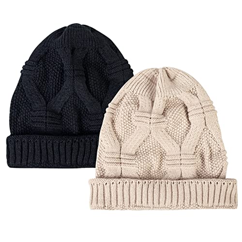 Senker Fashion 2 Pack Winter Slouchy Beanie for Women, Knit Beanies Warm Fleece Lined Chunky Oversized Skull Cap Gifts