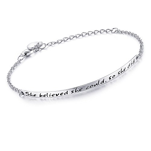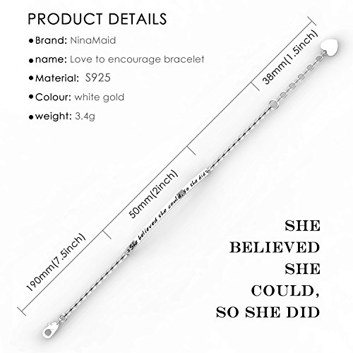 NINAMAID “She believed she could so she did” Engraved 925 Sterling Silver Inspirational Bangle Bracelets