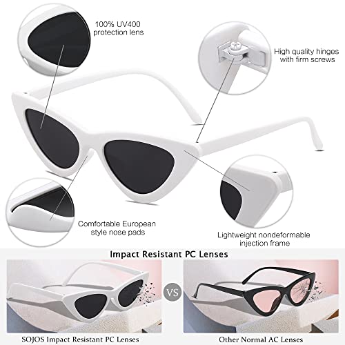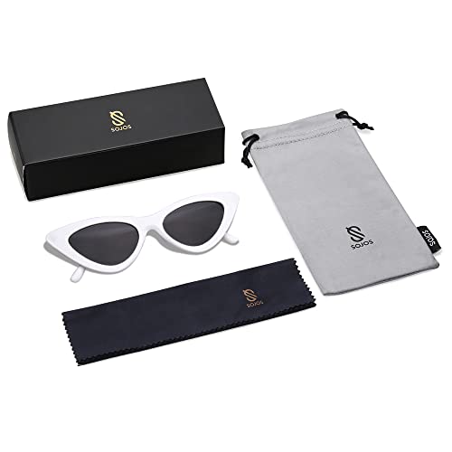 SOJOS Retro Vintage Narrow Cat Eye Sunglasses for Women Clout Goggles Plastic Frame SJ2044