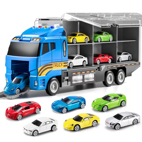 Multi-Purpose Toy Cars – There are 12 parking spaces on both sides of this transport vehicle, which is convenient for children to store diecast cars. There’s a hidden take care of at the top of the truck, children can change the venue at any time to continue the game. Very suitable for indoor games and outside toys.
