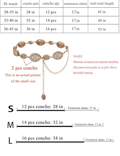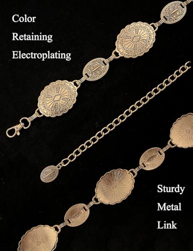TOPACC Western Metal Concho Belt for Women Cowgirl Chain Belts for Dresses Jeans Country Concert Outfit