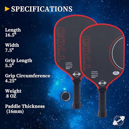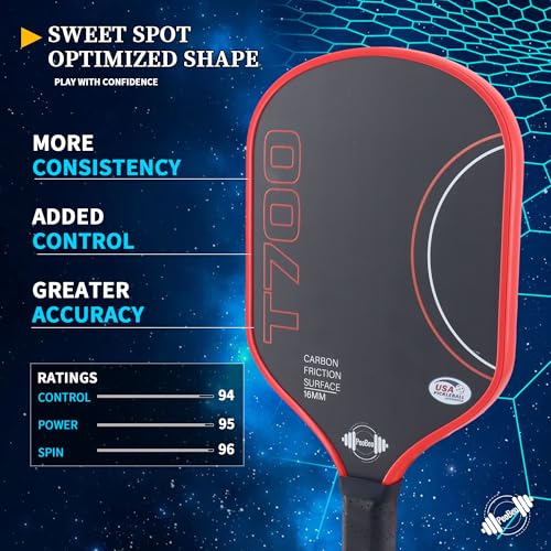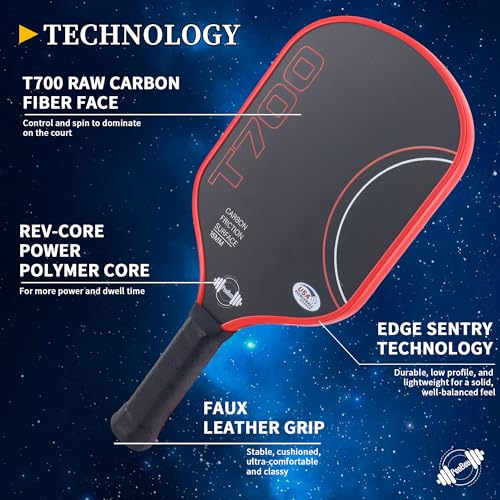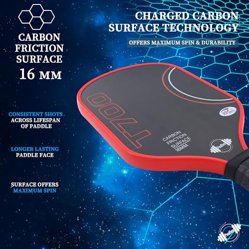 USAPA Approved T700 Raw Carbon Fiber Pickleball Paddle with a Rev-Core Power Polymer Core, Charged Carbon Surface, 16mm Paddle Ultimate Spin, Control & Consistency, Anti Slip Sweat Absorbing Grip