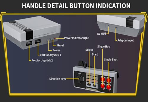 AV Display Output: This Unfashionable game console is AV output, Connect easily to your smart or old TV by the use of AV ports and you’ll relive the fun of childhood classic games with your circle of relatives. (please make sure your TV/screen has an AV input port)