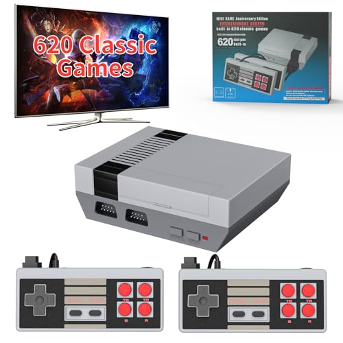 Vergissm Retro Game Console, Built-in 620 Classic Edition Games, Mini Video Game Console AV Output and Dual Game Controllers, Classic Game Console for Kids/Adults, Nostalgia Gifts for Christmas