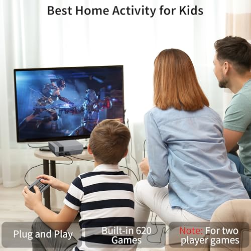 Built-in 620 Classic Retro Games: This game console has built-in 620 rich and massive classic games, including dozens of the most classic classic video games, action, sports, puzzle solving, fighting and racing, etc. Take you back to your childhood memories and enjoy family entertainment time immediately