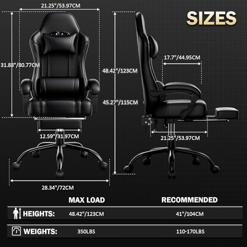 Upgraded Metal Base: Low noise durable nylon racing chair with wheels for easy rolling. The wheels on the wide gaming chair also protect the floor from wear and tear and reduce the noise generated when moving. The upgraded all-metal base provides a sturdy foundation for the gaming chair with footrest and can withstand over 300 pounds