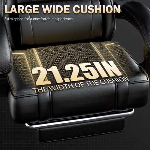 Premium Pc Gaming Chair: Faux leather big and tall gaming chair for prolonged sitting. Gaming desk chair ditch the cheap PVC material, skin-friendly and soft leather material that is resistant to scratches, stains, peeling, and cracking, while also being breathable. Massage gaming chair is padded with high-density cold molded foam to ensure a comfy seating experience, that will retain its form after long periods of use