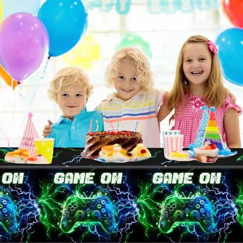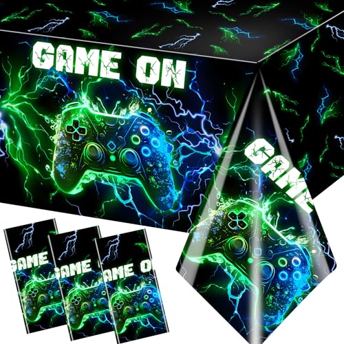 Video Game Table Cloth Video Game Birthday Decoration,3pcs Neon Plastic Waterproof Gaming Table Covers for Boy Kids Player Geek G-AME Party Decoration