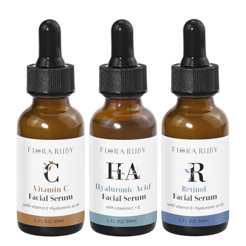 Vitamin C Serum, Retinol Serum & Hyaluronic Acid Serum for Face Skin Care Set Facial Serum, Power Face Serums for Sensitive Skin, Fine Lines& Wrinkles – 3 count of 1 Fl Oz