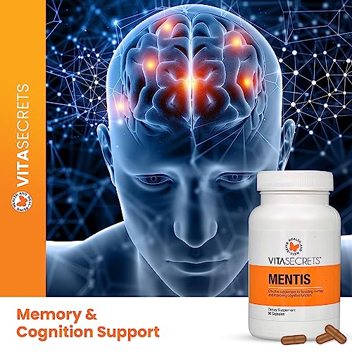 Vitasecrets Mentis Memory & Cognition Support Supplement – Concentration, Clarity, Cognitive Enhancement – Vitamins B6, B12, Ashwaganda, Gingko Biloba| Gluten and GMO Free, 90 Capsules