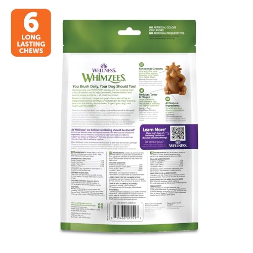 WHIMZEES by Wellness Hedgehog Natural Dental Chews for Dogs, Long Lasting Treats, Grain-Free, Freshens Breath, Large Breed, 6 Count
