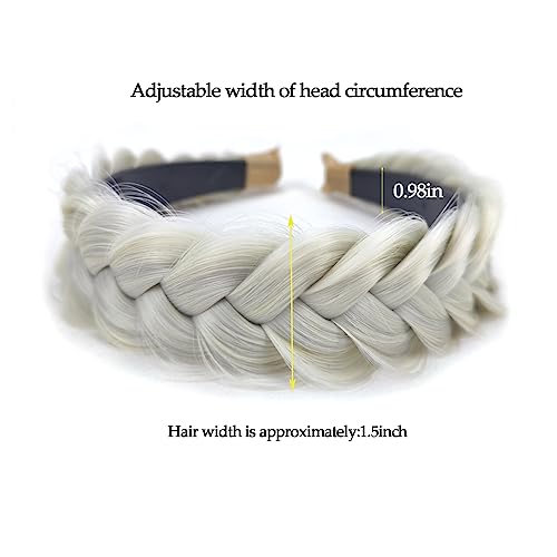 STHEJFB Wide Braided Headband Hoop Fashion Hair Accessories Elastic Non-slip Band for Women and Girl (White Grey)