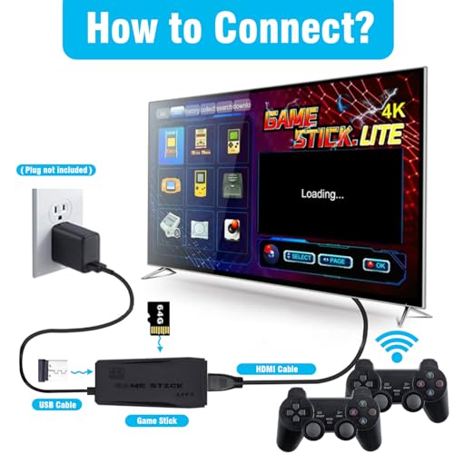Wireless Retro Game Console, Video Game Console with Built-in 9 Emulators, 20,000+ Games, 4k Hdmi Output, and 2.4GHz Wireless Controller, Nostalgia Gaming Stick,Plug & Play TV Video Games(64G)