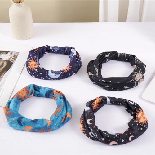 4 VALUE SET – 4 moon phase headbands with different star and moon prints may also be worn any way you wish to have, value set to match your fashionable outfit